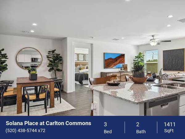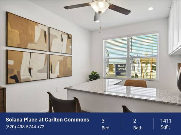 Welcome home to Solana Place at Carlton Commons, your personal retreat in Casa Grande, AZ. Enjoy all of the comfort and convenience that comes with a professionally managed community with all the space and privacy of a single-family home when you rent one of our brand-new three or four bedroom houses. As you explore your preferred floor plan, you'll find all of the interior finishes you're looking for in a thoughtfully designed layout with smart-home features.