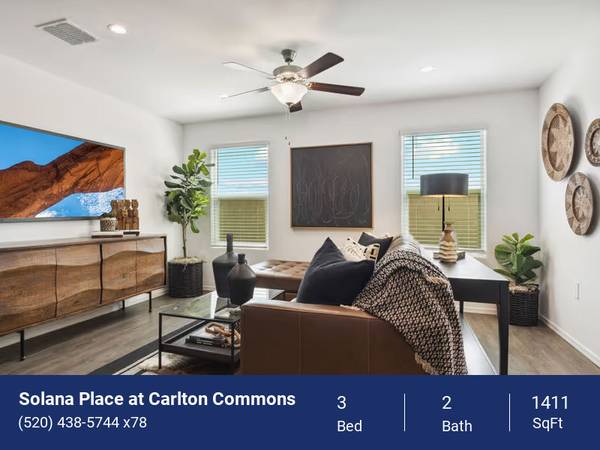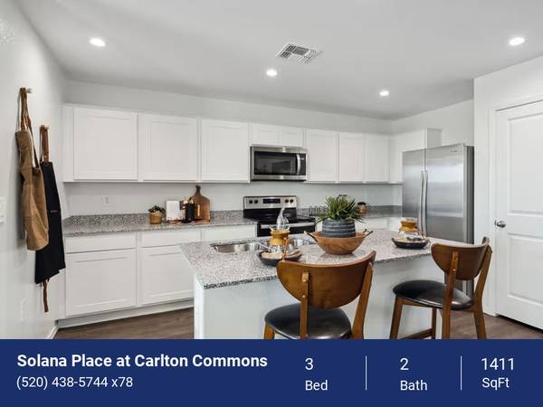 Welcome home to Solana Place at Carlton Commons, your personal retreat in Casa Grande, AZ. Enjoy all of the comfort and convenience that comes with a professionally managed community with all the space and privacy of a single-family home when you rent one of our brand-new three or four bedroom houses. As you explore your preferred floor plan, you'll find all of the interior finishes you're looking for in a thoughtfully designed layout with smart-home features.