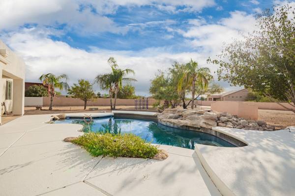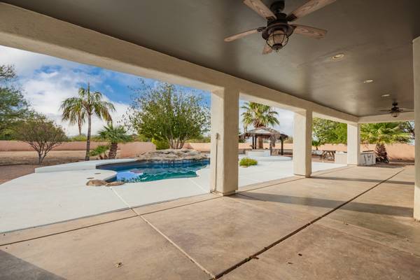 Beautiful 4BR/4BA home on nearly an acre with a versatile floor plan and plenty of room to spread out. Inside, enjoy over 2,700 sq. ft. of living space featuring two primary suites, perfect for multi-gen living or hosting guests. The spacious kitchen flows into the open dining and living areas with vaulted ceilings, creating a bright and inviting atmosphere. Fresh paint and new carpet throughout make this home move-in ready. Step outside to your private backyard retreat with a sparkling pool, spa, and covered patio ideal for entertaining. The fully fenced yard also includes a separate dog run, offering space for pets to play. A 3-car garage and ample storage add convenience. Solar panels keep utility costs low. Close to schools, shopping, and easy access to I-10.