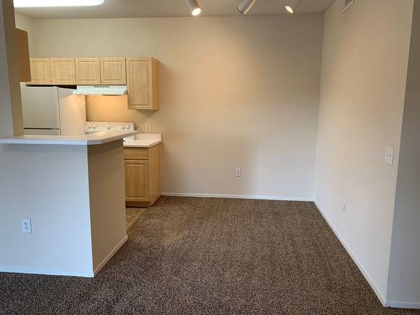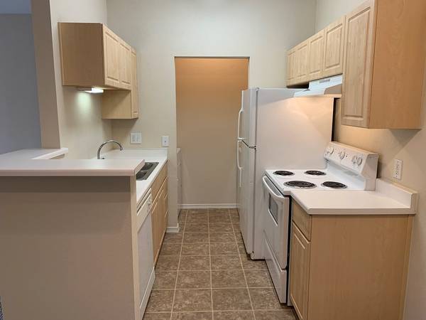 Apartments feature a ceramic tile entry, track lighting in the dining area, nine foot ceilings, ceiling fans in bedrooms and living area, and a private patio or balcony. All apartments include full size washer/dryer, dishwasher, large stove/oven, refrigerator with icemaker, one covered parking space, 24-hour emergency maintenance, and pest control.