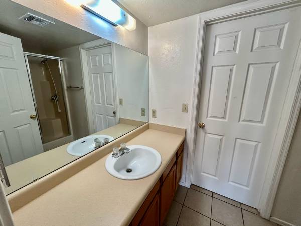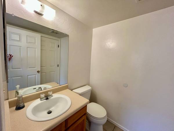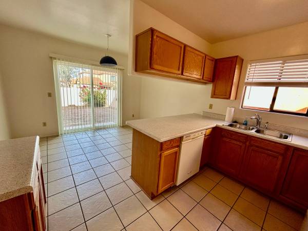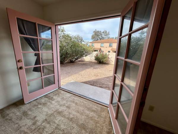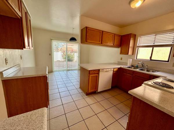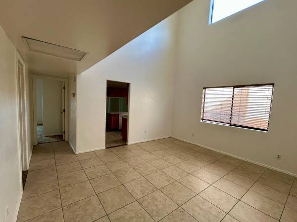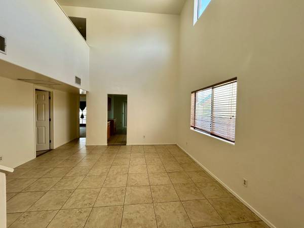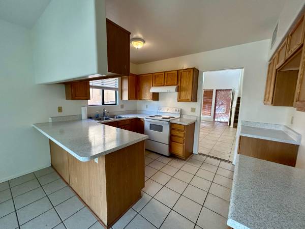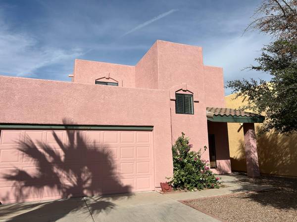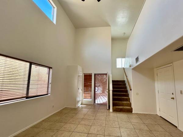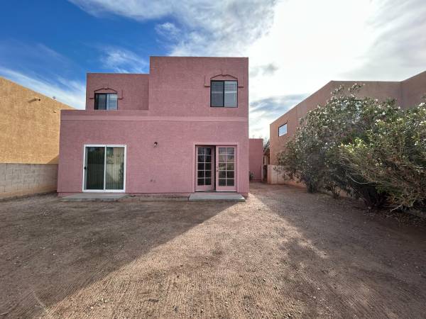 Our comfortable 4 bedroom 2 bathroom home has a spacious living room with a vaulted ceiling, a family sized kitchen and dining area, and master bedroom with full bathroom and french doors that open to the backyard. Upstairs, there are 3 large bedrooms and a full bathroom. With carpeted bedrooms and tile throughout living and dining areas, this home is ready for responsible tenants and available to tour. The home has central AC and is located on a quiet cul de sac with a 2 car garage . It is conveniently located near Tucson International Airport and walking distance to the park and splash pad.