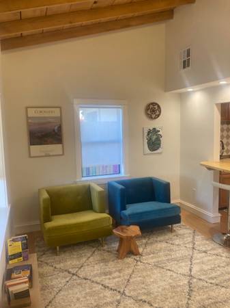 Thoroughly redone, upscale - beautiful, private, and comfortable 1br/1ba 570 sqft unit on a central, mid-town, quiet street. LANDLORD IS THE OWNER. Vaulted, wood beam ceiling, maple butcher block bar table, tasteful window covering. Spacious, covered, partly enclosed porch, and large, fenced & gated off street parking area and yard. Fruit trees in yard!