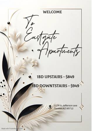 Eastgate Apartments is a smaller, peaceful community located near Speedway and Craycroft in Tucson, AZ. Our great central location puts you within walking distance to many local retailers including Autozone, Family Dollar, Jeri's Uniforms and Accessories just to name a few, and we're just steps to local city transportation.