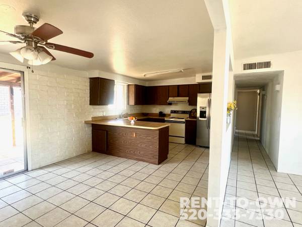 Looking to make a new beginning and start over in a home of your own in Northwest Tucson?! We've got the perfect home waiting for you! Rent-to-Own. Motivated Seller. EZ Qualification and NO banks. This amazing 3 bedroom, 2 bath, 1,400 sqft home comes with a breakfast bar, a covered patio, AC, a two-car carport, an extra gated parking, a large fenced yard, and extra storage shed. It's located in the highly sought after Northwest Tucson neighborhood, close to hopping, Northwest hospital, restaurants and easy access to Interstate 10. NO HOA! Own this home for an initial investment of $3,900 with a monthly payment of $1845. Interested? Just drive by, look through the windows, and grab a free screening questionnaire. You can send it back by text or email. Once we get it, we'll set up a time for you to see the home and go over the details. Call/text us at show contact info for more info.