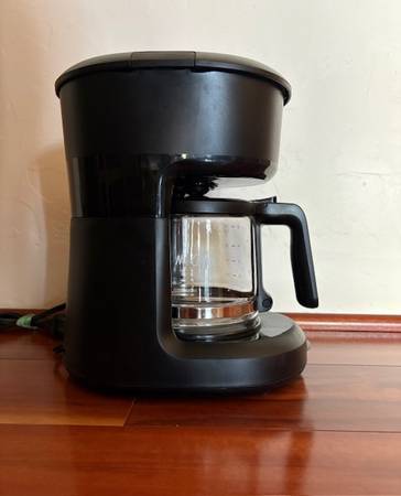 Sleek black Mr. Coffee maker with glass carafe. Makes 5 cups or 24 ounces of coffee. Great condition. See pictures for more details.