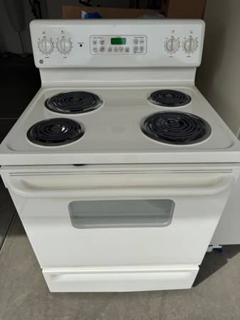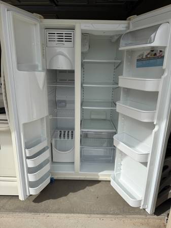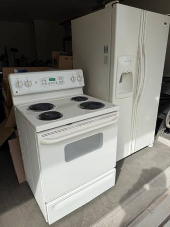 Full size ridge and electric stove in good working condition. Available for pickup. Fridge has water and ice dispenser. Stove has a self-cleaning setting.
