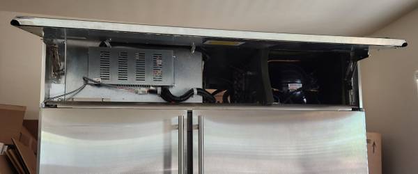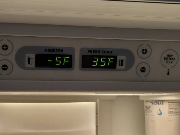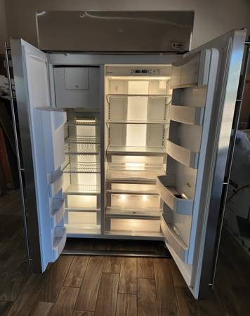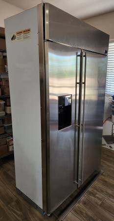 GE Monogram - 48" Side by side Counter Depth refrigerator Model#: ZISS480DMCS SN: SF039860 Works well; see pictures for condition and temperatures.