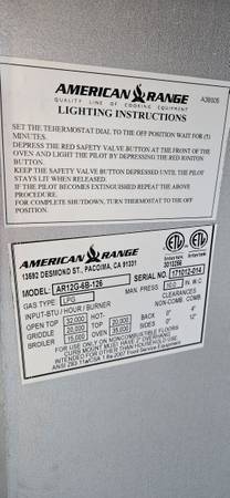 Recently pulled from storage, super clean inside and out. Oven interior looks new, griddle surface solid (no warping), burners all intact. Great for restaurants, catering, or outdoor kitchen setups that run propane.