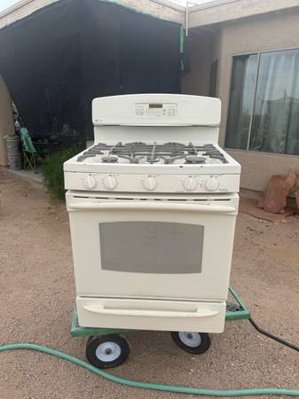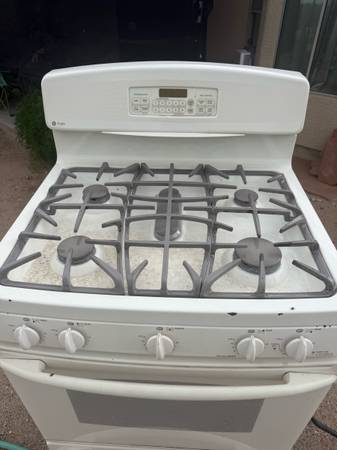 This GE range works and was only taken out of the house because a new one was bought to match other appliances. Has all the pieces. There are some spots of paint scratched off on top but still nice....
