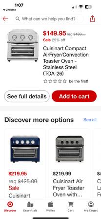 Upgrade your kitchen with this brand-new Cuisinart TOA-26 Compact Air Fryer Toaster Oven, never used and in perfect condition. It still has the original manual and paperwork — the only thing missing is the retail box.