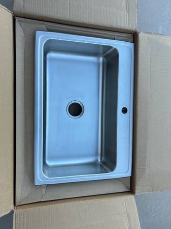 Installed professional then realized we wished deeper sink. VERY minimal use for ~ 10 days before replaced. Has minimal silicone underneath from original installation which will remove easily with warm hairdryer hea. In original shipping box Cash & Carry