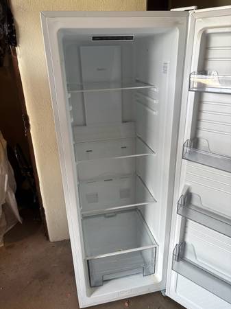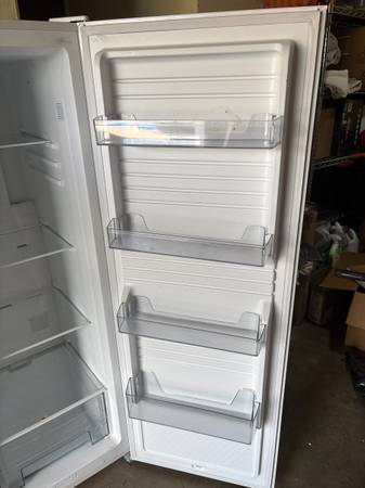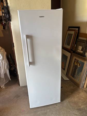 Like new. Bought this summer and only used a few months. Just don’t need this much freezer space with kids gone for school. Small dent on side shown that is barely noticeable and a crack in the clear drawer front. Other than that you would think this is new. This unit sells for $950 with tax, so this is a great deal!