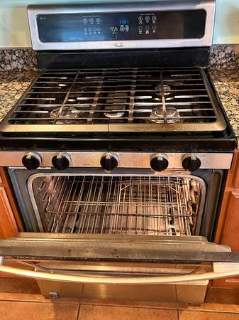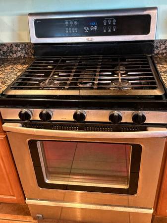 Whirlpool gas stove oven with storage on bottom, convection, broil bake options, oven light, timer, and other features. $250 cash only must pick up (Houghton Drexel) serious inquiries only please,...