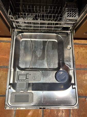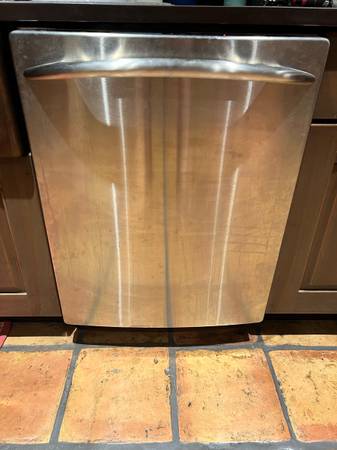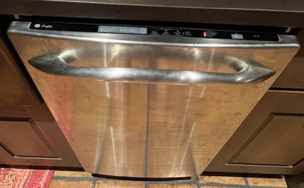 Old model GE Profile Dishwasher. Something is wrong with the control panel, so it only works on “Normal” mode. Can’t switch modes. Delay start button also not working. So it works fine, but you can’t change modes. Also has very small dent on top edge. See pictures.