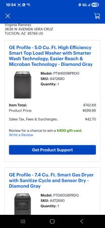 GE profile 5.0cu.ft. high efficiency top load washer and matching GAS dryer. Only had for two years. They're both is great working condition. Only two years old, purchased from bestbuy. Pick up or we can deliver for a fee.