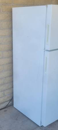 The fridge is in good condition and it works great! The unit is pre-owned so there are some signs of wear like small dents and/or light scratches but it doesn't affect proper operation of the appliance. There is a slight crack in the seal on the fridge door but it doesn't affect proper sealing of the cabinet and it doesn't cause cold air to leak. Everything works as it should and it is clean inside and out.