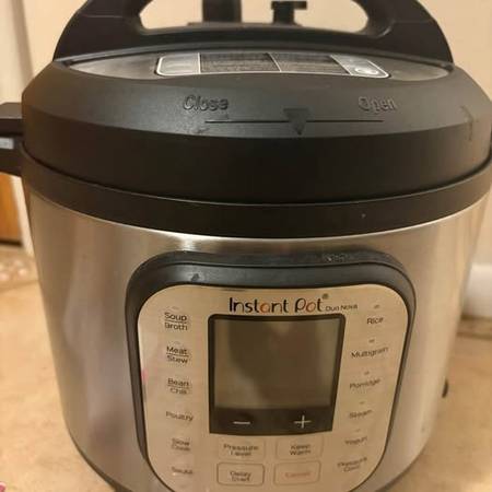 Six-quart Duo Nova Instant Pot retails new on Amazon for $110. Instructions, accessories, and recipe book included. 7 Cooking Functions: Pressure cook, slow cook, sauté, steam, make rice, yogurt, or...