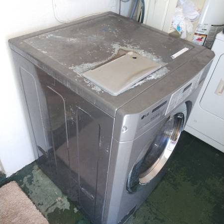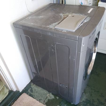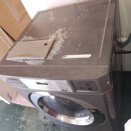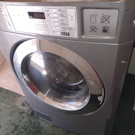 Side load LG commercial washer. I thought it had a leak underneath so I bought a new one and it's not leaking, it was my hose connection iny laundry room. I have it hooked up to water now and plugged in so you can check it out and see it's not leaking before you buy it.
