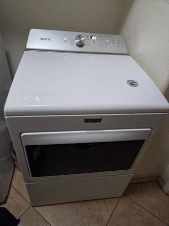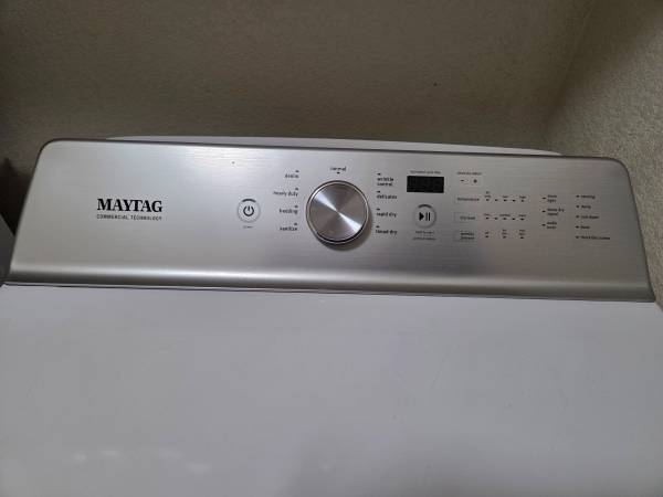 Maytag electric dryer, commercial technology, large tub, several options as seen in picture. Includes 4-prong power cord and user manual. Made in USA. Can power up and demo before purchasing.