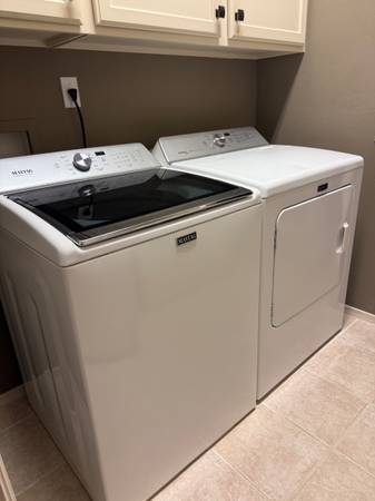 Maytag steam Technology electric dryer and Washer commercial technology, several options as seen in picture. Includes 4-prong power cord and XL steam hookup for dryer,hoses for washer and user...