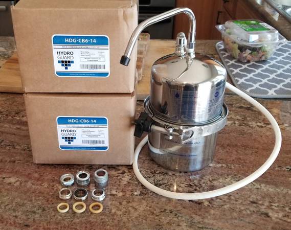 This unit is used and comes with all of the fittings needed to hook up to a kitchen sink. It also comes with two new replacement filters @ $40 a piece totaling $80.