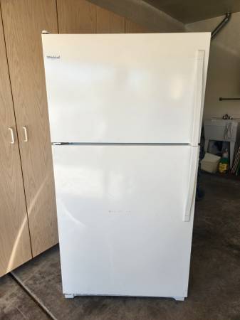 Whirlpool, Top Freezer, Refrigerator. 2019 - 20 cu. ft., dimensions - 33" wide, 66" tall, 32" deep including the door handle. Excellent condition, very very clean. Reason for selling: Moved to a...