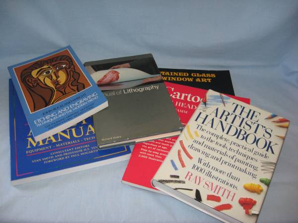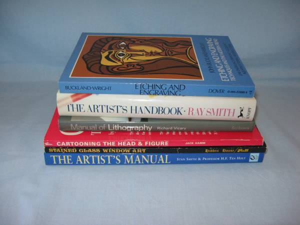Artist's Instruction Manuals. Like New condition. Set of 6. Includes The Artist's Manual, Stained Glass Window Art, Cartooning the Head & Figure, Manual of Lithography, The Artist's Handbook, and Etching and Engraving Techniques and the Modern Trend.