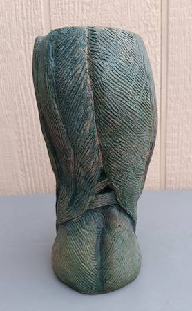 Unique hand built heavy ceramic artistic vase. Design is the anatomy of a human knee and leg. Multiple colors and textures, signed by artist. Measures 9 1/2 inches tall. $120 email, text or call...