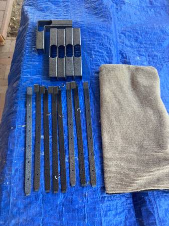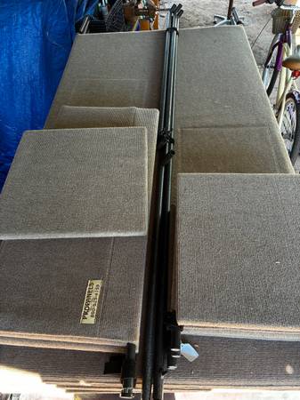 (9) 7' original panel (38 1/2"wide) in Buff Oatmeal with stiffeners and support bars 18" and 36" pedestals (8) anchor hangers Please call or text