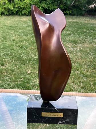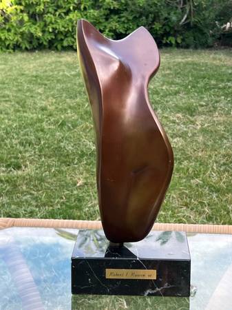 Robert Russin is very well done and died in 2007. The sculpture is in perfect shape. One owner. Always kept indoors. We will negotiate serious offers.