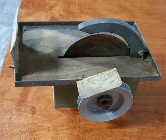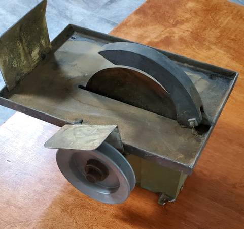This is a used Rock Rascal diamond saw: base, cover, and pulley only. I do have a small electric motor for sale you can purchase separately. The blade on this unit is worn out, but replacements are readily available. Can be used for lapidary, tile, etc.