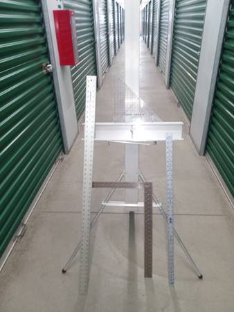 Utility tray is 21in. wide, sets up in seconds and can fold and taken in most cars. Supports canvase up to 48in. high. Rubber tips on legs.