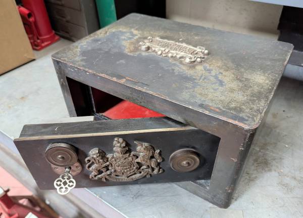 This British Cast Iron Strong Box safe by Bauche is a rare item and is desired by collectors and connoisseurs alike. This item is heavy. The buyer must arrange for pickup.
