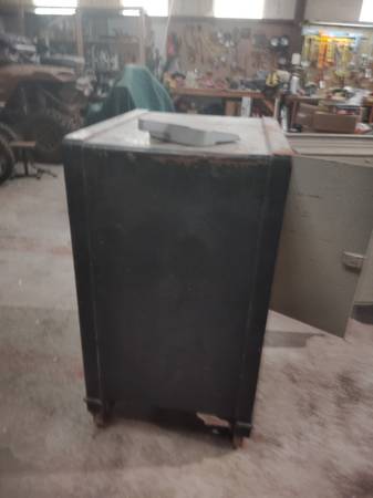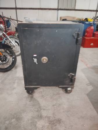 2 Antique safe with combination contains shelf and wheels and the second safe is smaller height is 33 in length is 21 in with the width of 19 and a half. The larger safe is 33 in of blank 25 in of width and 47 in of height $450 for the big safe and $350 for the smaller one.