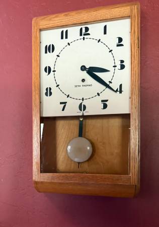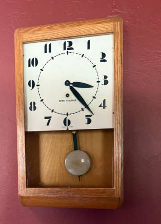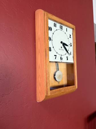 This Oak wall clock has been working in the same household for years. It was recently serviced (03/06/2025). It is in very good condition.