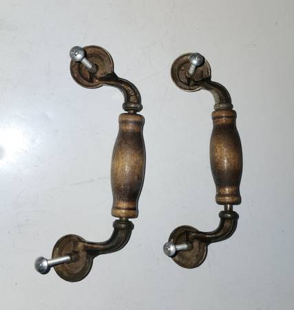 Antique drawer pulls (70s?) The wood could use a little rehab but generally in great shape. Screws are 5" apart.