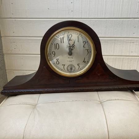 Antique electric mantel clock that chimes on the hour. Bought from original Boston owners. 21.5" L x 10.5" W. May need look at chime since hasn't been used recently.