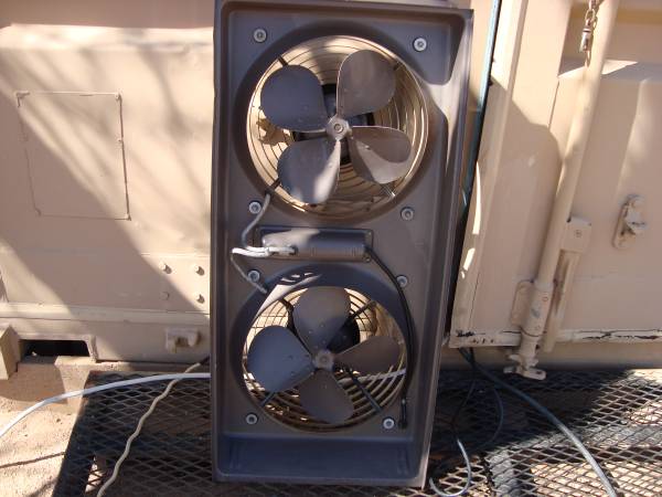 antique robbins & meyers dual-motor casement window fan this is very good condition it is 36" x 16 3/4 call 256-4777 CALLS ONLY