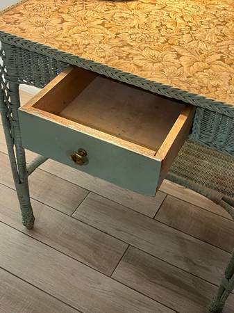 Antique Wicker Rattan Teal Desk & Matching Lamp - antiques - by...
