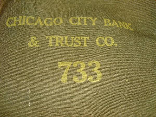 Old U s Mint Bank canvas cloth bag Chicago city Bank 1987 US Mint Qtrs bag 11-1/2 x 20" 2 cent money bags holding 50.00 in pennies. One is dated 1900 and one 1986 17" x 10" offers considered