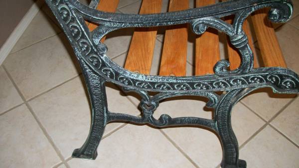 RESTORED CAST IRON AND WOOD BENCH, ORIGINAL WOOD AND BRASS HARDWARE, ORIGINAL BRASS PLAQUE, ORIGINAL BLACK AND GREEN PATINA. $170 CALL 520-743-959 ONE $170