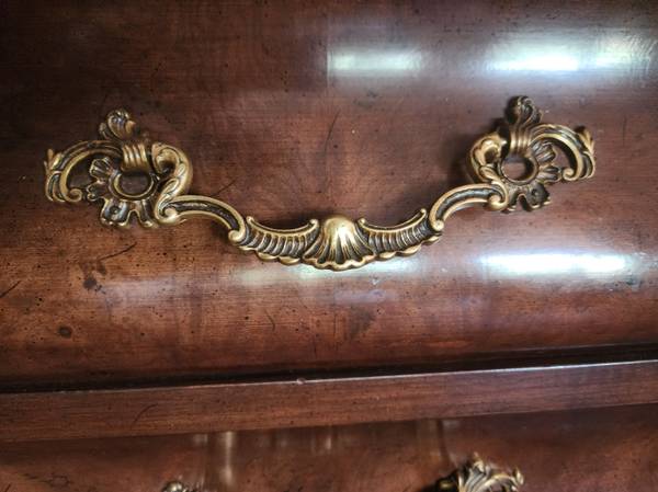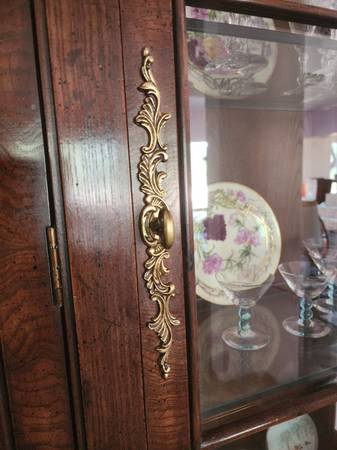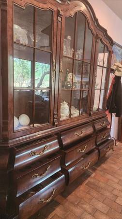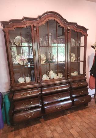 Vintage Henredon China Cabinet, in French Country Style. Walnut Burl Circa 1970-1980 in excellent condition. Dimensions: 80″ wide x 17″ deep x 86″ tall.