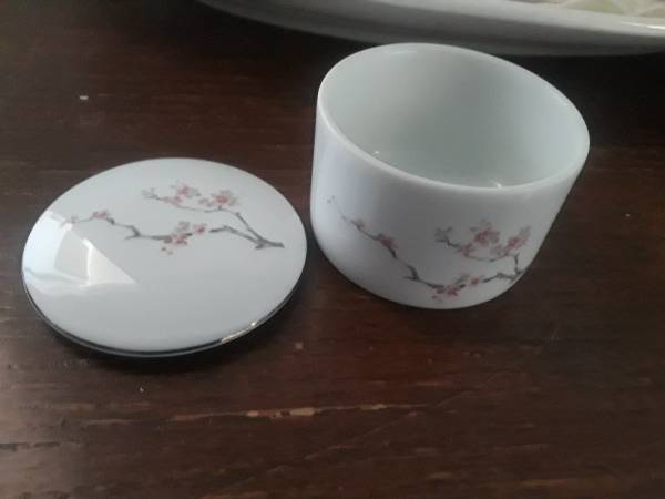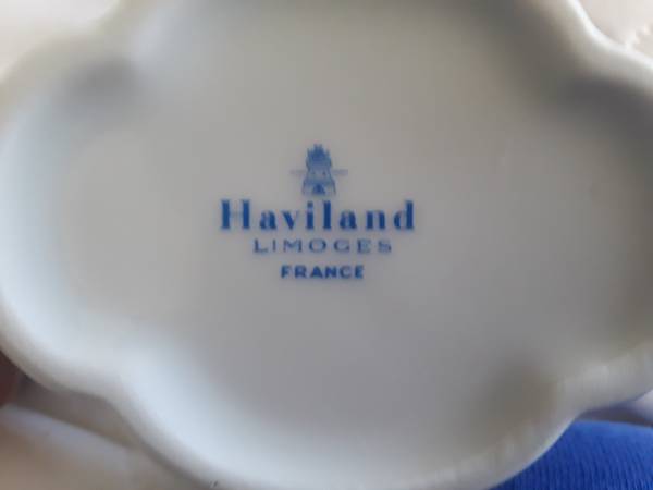 Everything shown for $75. Creamer and sugar bowl were my grandparents. Teapot bought separately and may not have original lid. They have several small chips in the porcelain(and sugar bowl has a crack).These and the newer small handle bowl (no chips)are marked Haviland.Limoges France. The following are not limoges but have same design. The one butter pat is old. The platter was my grandparents and is discolored. The small round with lid is not old. Price reflects condition.