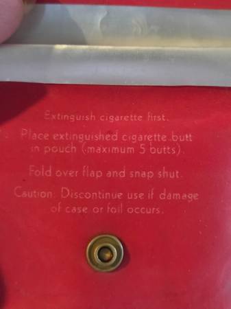 FREE. Compact red pouch with snap closure. See writing that is on it. This is for cigarette butts. Pickup or meet near Speedway and Harrison.