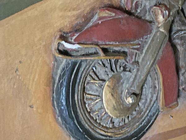 Very Large Wooden 3D Harley Davidson Motorcycle Club sign - $50 Very heavy wooden sign, measuring 36" by 24" by 1" There's a chip along the top and on the front fender of the bike. Pick up at Grant...