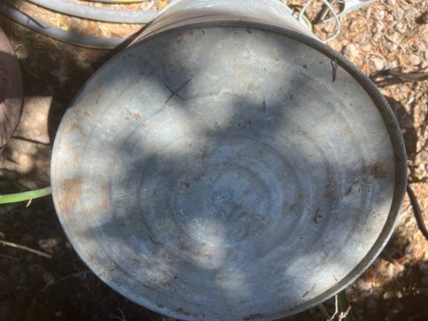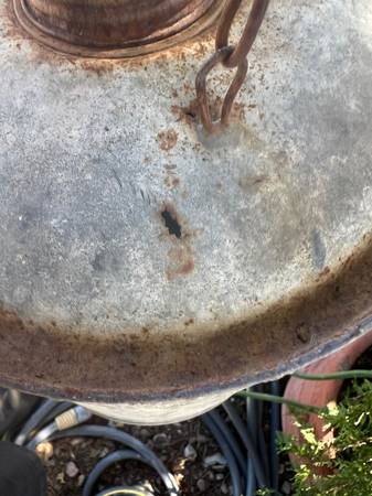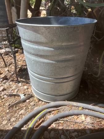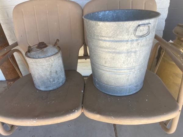 Large galvanized bucket does hold water $35.00 Delphos gas can with wood handle $25.00 small hole on top and lid is on tight . Neither of them dented up . Buy both together $50.00 cash John