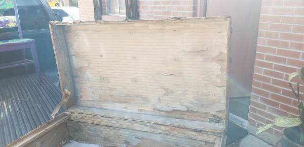 If you see the ad, it is available. No Email, No Text, Phone Calls Only. Vintage Wooden Steamer Trunk in ruff condition but ok for age. Thank you for looking.