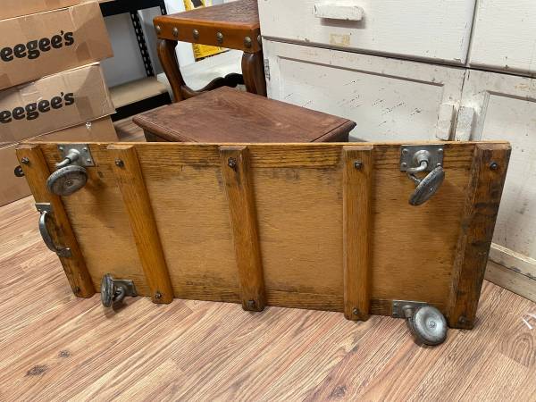 Vintage wooden TRW /Service Line mechanics creeper with metal casters. Made around the 1960’s. This is in good condition with the headrest showing some cracking, the wood is in great shape and the wheels are also perfect. The whole thing is structurally sound and ready to use or for decoration. It measures: 36 inches long times 15 1/2 inches wide times 4 inches high. Asking $35