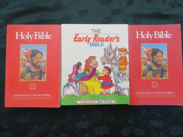 2 International Children's Bibles (Soft Covers) and 1 Early Readers Bible (Hard Cover). All in excellent like new condition. $5 each