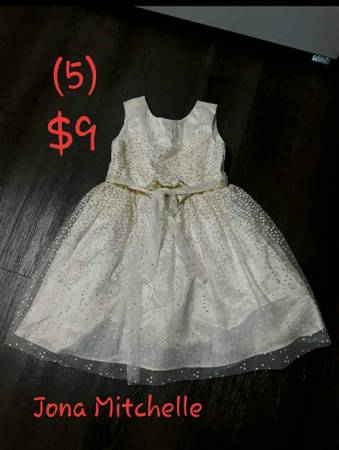 Several Girl dresses See all pictures for prices and size. Size 5T, 5,6, 7, $8-$9 and $15. Shimmery lilac shirt.(not sureon size maybe (6-8) $7. All in excellent condition. Buy All Or Bundle and Get...
